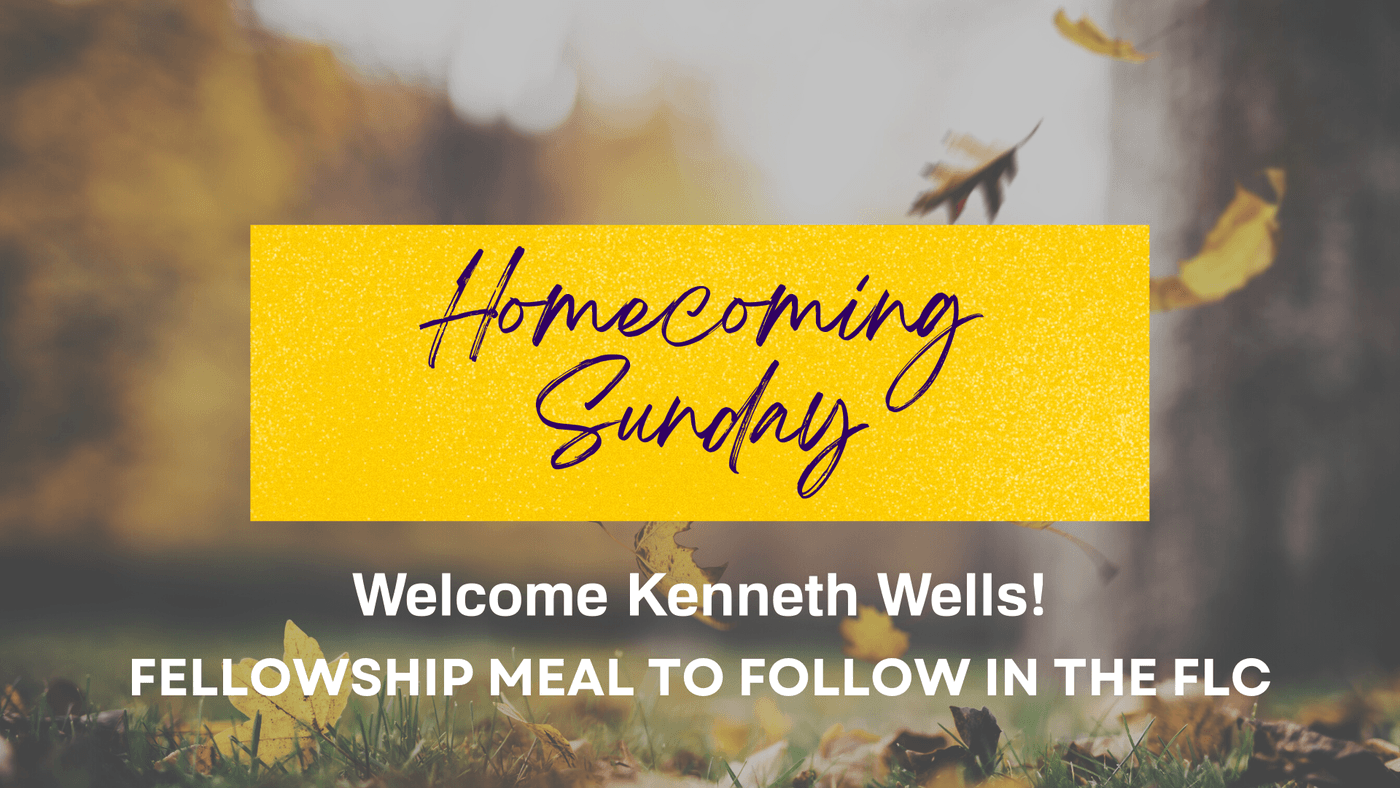 Join us for our annual Homecoming Sunday with guest speaker Kenneth Wells! Following the service, we will have a meal together in the Social Hall. Bring your family, invite a friend, and come ready to celebrate with us.